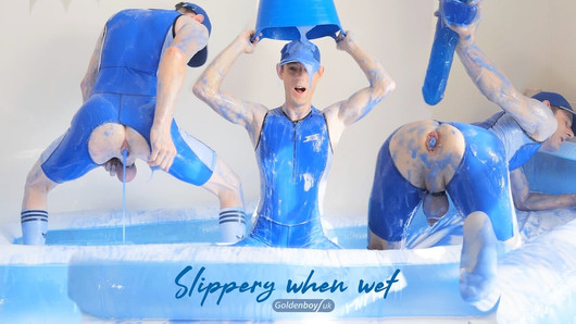 Ekstremno sklisko mokro drkanje užitak u kupaonici s vodom i sapunom