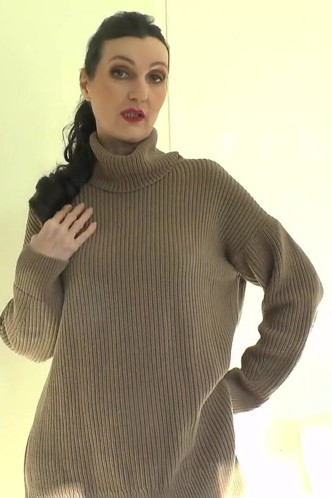 Today I'm wearing a thick, loose, long turtleneck sweater! I'll show you my sweater, you can sniff my sleeves. I'll come closer, you can rub your face against my sweater. My sweater is so cozy and warm. Oh look, you've got a big bulge in your pants again! Start masturbating! I'll rub my soft sleeves against your face. You can really indulge your sweater love! Finally, you can cum on my sweater!