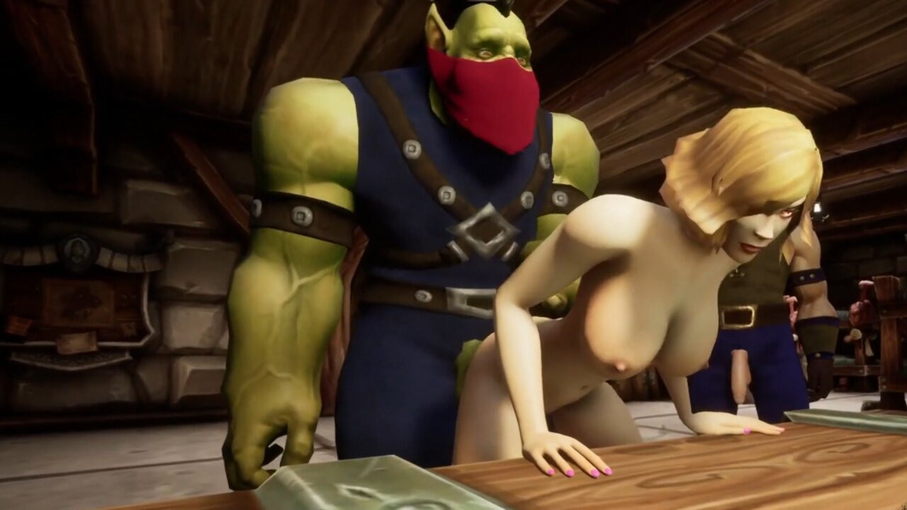In a prison somewhere in the world of warcraft two guards an ork and a human are taking turns fucking on of their latest prisoners. She is blonde busty and she takes ork dick up her ass.